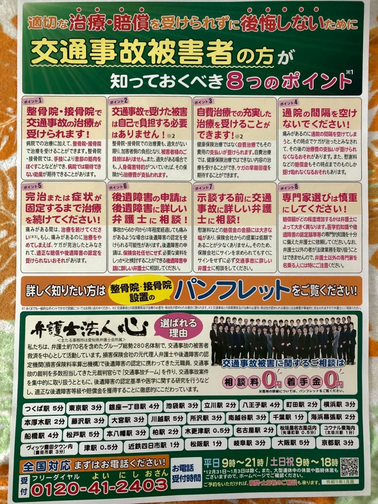 - 整形外科・弁護士事務所とも提携(紹介・相談可能)