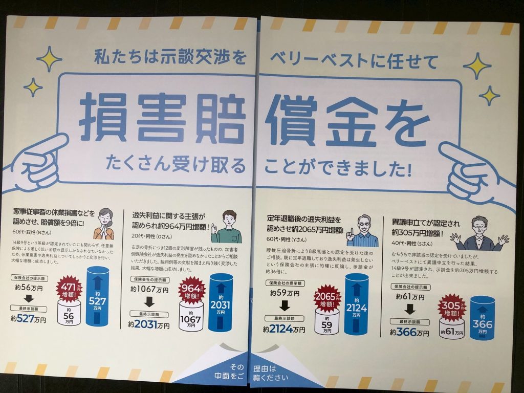 - 窓口負担:0円(保険会社へ直接請求)